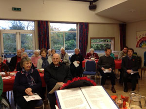 This was the fifth and last Afternoon Service of 2016, and the fortieth since these very special gatherings began in 2008. Many in this afternoon congregation now find they cannot join Sunday services and they appreciate shorter mid-week Worship and also the opportunity to meet up with church friends. Many people have made these possible and this one was a milestone – and an opportunity to extend very grateful thanks to those who have officiated, accompanied on the piano, set out and decorated the tables, and made and served cups of tea and eats, not to mention the ‘welcomers’, all the drivers who have offered a supportive arm to the car and have transported to and from West