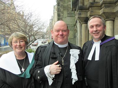Both services were well attended, despite the travel difficulties caused by the snow, and Dr Browning, Scott McKenna and Anne Mulligan even managed briefly to brave the wind outside the west door for a photo opportunity!